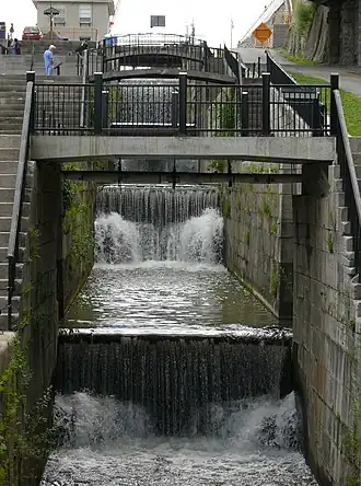 Its name derives from a set of Erie Canal locks (Lock Numbers 34 and 35) within the city that were built to allow canal barges to traverse the 60-foot natural drop (18 m) of the Niagara Escarpment.[3] It is part of the Buffalo–Niagara Falls metropolitan area.