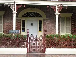 Loder House is an 1834 two-storey brick Georgian townhouse with attic and later Victorian two storey timber verandah with cast iron lacework balustrades and verandah brackets.[2]