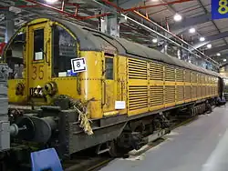 The original livery was grey, but crimson lake was applied from the early 1960s using supplies of LT steam locomotive paint. This was changed to yellow in the early 1980s, which was deemed to be more safety conscious.[16]