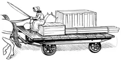 2. ^ Walrond, Sallie (1979). The Encyclopaedia of Driving. Country Life Books. pp. 113, 183. ISBN 0600331822. OL 4175648M. Dray: See Lorrie. Lorrie: A strongly built, flat-topped, four-wheeled cart, which was hung on four sidesprings. It was used for transporting heavy goods such as sacks of coal or corn and could be pulled by a single horse with shafts, or a pair with either a pole or two pairs of shafts.