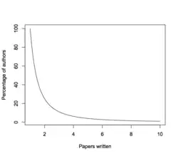 Lotka's law,[1] named after Alfred J. Lotka, is one of a variety of special applications of Zipf's law. It describes the frequency of publication by authors in any given field.[2][3]