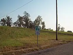 Route 410 was created in 1928 by an act of the state legislature.[8] It originally existed as a loop off of Route 63, traversing the sharp bend in the Mississippi River occupied by the former leper colony. Route 63, like the modern LA 75, cut across the bend between Carville and St. Gabriel. The route remained largely the same prior to the 1955 Louisiana Highway renumbering, experiencing only minor alterations due to reconstruction of the river levee.[7][9]