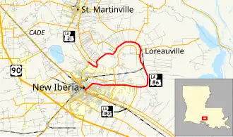 La 86—From a junction with La-US 90 at or near New Iberia through or near Morbihan and Loreauville to a junction with La 31 near New Iberia.