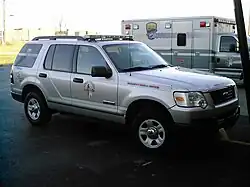 LMEMS utilizes a fleet of modular ambulances manufactured by Lifeline Emergency Vehicles from Sumner, Iowa[7] and Ford Explorer response vehicles called chase-cars. Currently three styles of ambulances are in use. Specimens of the former LFD and JCEMS (slant-sided) ambulance types remain in use until retirement with new paint and striping. The newest (post-merger) ambulances retain the straight-side feature of the former LFD type and are taller, longer, and heavier. In 2012, Ford Motor Company announced they would no longer manufacture the Econoline van ambulance prep package and subsequently LMEMS has opted to begin procuring Type I vehicles based on the F-450 pickup truck chassis. The first delivery of Type I ambulances occurred in 2013.