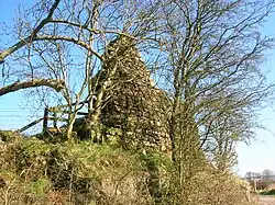 A small church may have been built here, possibly at the site of the original small Lochlands building, which stood on the bank of a small loch, to "counteract" the many pagan sites located at Cuff Hill, such as the lost Druid's Stone Circle, the Druids' Graves or Caves (a long barrow), the now destroyed Four Stones, a standing stone, etc.[14] The name Cuff itself has been interpreted as meaning Druid or Priest.[1] Saint Inan's Well and Chair are close by and one of the hills in the area, marked as Krelig Hill, was once topped by a cross.[15]