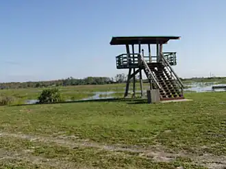 The refuge allows multiple activities in the park such as, fishing, hunting, hiking and also offers guided tours.[12] Fishing is allowed in only three areas of the refuge which are Hillsboro, Headquarters and the 20-mile bend. All fishermen must also carry a valid fishing license in the state of Florida.[13] There are also over 16 different species of fish present within the refuge that are able to be caught. Hunting is allowed within the refuge to manage wildlife populations. It is one of 330 refuges open to the population for hunting.[14] Waterfowl hunting is permitted in the late fall and early winter months. All hunters are required to possess a valid Florida State Hunting License[15] and a Florida State Duck Stamp.[16] Alligator hunting is only available by permit from the state of Florida. There are also numerous hiking trails throughout the refuge. One is a bald cypress swamp boardwalk that is located directly behind the visitor center. The others are accessible through the Lee Road parking lot. The refuge also offers guided tours throughout the year. They offer, canoe tours, night walks and tram tours by reservation only.[17]