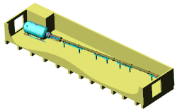 A Ludwieg tube is a wind tunnel that produces supersonic flow for short periods of time. A large evacuated dump tank is separated from the downstream end of a convergent-divergent nozzle by a diaphragm or fast acting valve. The upstream end of the nozzle connects to a long cylindrical tube, whose cross-sectional area is significantly larger than the throat area of the nozzle. Initially, the pressure in the nozzle and tube is high. To start the tunnel, the diaphragm is ruptured, e.g., by piercing it with a suitable cutting device, or opening the valve respectively. As always when a diaphragm ruptures, a shock wave propagates into the low-pressure region (here the dump tank) and an expansion wave propagates into the high-pressure region (here the nozzle and the long tube). As this unsteady expansion propagates through the long tube, it sets up a steady subsonic flow toward the nozzle, which is accelerated by the convergent-divergent nozzle to a supersonic condition. The flow is steady until the expansion, having been reflected from the far end of the tube, arrives at the nozzle again. For practical reasons, flow times are about 100 milliseconds for most Ludwieg tubes.[1] For many purposes, this flow duration is sufficient. However, by taking advantage of multiple quasi-static flows between expansion wave reflections, experimentation times of up to 6 seconds can be achieved.[2]