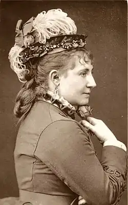 Thompson returned to New York following the death of Henderson in 1886 and again in the winter seasons of 1888 and 1891.[2] In 1887 she opened at the Royal Strand Theatre, London, under her own management, in Alfred Cellier's comic opera, The Sultan of Mocha.[2] She next starred in the French vaudeville-opérette Babette (1888, Antonio), but her voice was judged inadequate.[1] After this, her career began to decline. Her last American performances were in 1894 in The Crust of Society in a supporting role.[2] Back in London, George Edwardes cast her briefly in the Edwardian musical comedy An Artist's Model (1895), but by 1899, she had depleted her funds. A London benefit night was held for her on 2 May 1899 at the Lyceum Theatre, when she performed in The Wedding March by W. S. Gilbert. She also recited a rhymed "farewell address" written for her by Gilbert.[18] Her final performances were in 1904, as the Duchesse du Albuquerque in A Queen's Romance.[19]