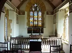 The chapel was thoroughly renovated in 1631 by Thomas Lyte, who installed the arch-braced-collar truss roof, the communion rail, a rear screen and a frieze below the roof painted with the arms of the Lytes and their relations. A monument to the south of the altar records Thomas' work on the chapel. In 1912 Sir Walter Jenner added the stained glass, including medieval glass said to have come from Charlton Mackrell church which William Le Lyte had commissioned before his death in 1316.[11][15]