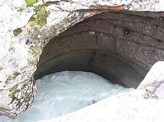 Mågålaupet (also written Magalaupet or Måggålaupet)[1] is a 100-meter (330 ft) long, zigzag-shaped gorge in the river Driva in Oppdal Municipality in Trøndelag county, Norway. It is located in the Drivdalen valley, about 12 kilometres (7.5 mi) to the south of the village of Oppdal.[2] The narrowest point is 1.5 meters (4 ft 11 in) wide.[3]