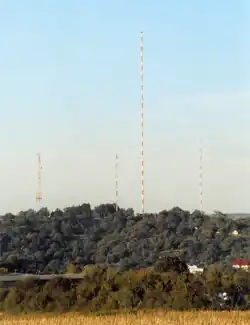 The Mühlacker Broadcasting Transmission Facility is a radio transmission facility near Mühlacker, Germany, first put into service on November 21, 1930. It uses two guyed steel tube masts as aerials and one guyed steel framework mast, which are insulated against ground. It has two transmission aerials for shortwave and one free standing steel framework tower for directional radio services. The shortwave transmitter was shut off on October 19, 2004. The medium wave transmitter was switched off in January 2012.