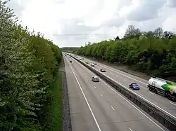 The motorway was originally approved as the "London to Basingstoke Motorway" with delays over funding for an extension to Southampton[2] the road was built to relieve two single carriageway trunk roads that were congested.[n 1][3]