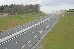 The Knocktopher-Waterford section of the M9 route was opened on 22 March 2010.[3] This section is 24 km long and runs between Junctions 10 and 12 on the M9 corridor. The scheme was built by BAM Ltd (formerly Ascon Ltd.). Junction 12 is not a standard motorway junction but is instead a roundabout. The left exit from this roundabout accesses the N9 road which continues to Waterford.