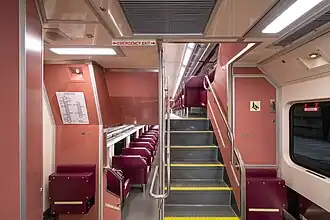 In 2008, the South Korean rolling stock company Hyundai Rotem won a $170 million contract to construct the MBTA's latest order for more bilevel cars.[4] The new order consisted of 47 BTC-4D cars, and 28 CTC-5 control cars, which were the first bilevel control cab cars to be put into service since the original CTC-4s in 1990. These cars first began to arrive in 2012, and featured various technological improvements over the older cars, such as interior and exterior LED displays, and automatic door control, which eliminated the need for a conductor to be present at every opening door.[5]