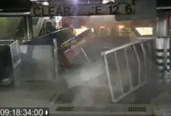 On October 15, 2003, Andrew J. Barberi collided with a pier on Staten Island.[10][11] Eleven people were killed, including one decapitation, and 70 more injured as a result.[12][13] On March 8, 2005, the National Transportation Safety Board (NTSB) published a report on its investigation into the incident. The NTSB determined the probable cause of the collision was the assistant pilot's sudden incapacitation due to unreported and illegal use of prescription medications for chronic pain, high blood pressure and insomnia (none of these conditions had been reported to the Coast Guard as required by law), with a contributory cause of the master's failure to maintain command and control of his vessel.[14]