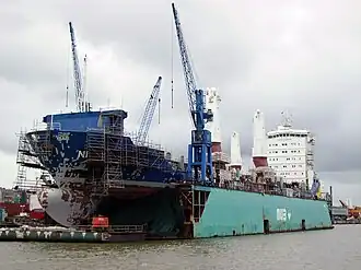 Nirint Atlas drydocked in 2007, prior to her conversion to a power ship