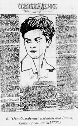 On 29 May 1927, a student and member of MMTRO, Dimitar Gyuzelov, was arrested in Skopje, as a result of heightened Yugoslav security measures after a series of incidents and a Serbian postal office employee reporting him for attempted recruitment into MMTRO. Several other MMTRO members from Skopje were arrested too. In the subsequent trial in Skopje, several students were given prison sentences, while eleven others were acquitted. On 1 December 1931, Yugoslav king Alexander pardoned seven of the nine sentenced students.[2] During the Bulgarian occupation of Skopje in World War II, MMTRO's members placed a plaque dedicated to Mara Buneva, the revolutionary who killed Yugoslav legal official Velimir Prelić on 13 January 1928.[2] In the post-World World War II era, the organization was disbanded after many of its former members were persecuted by the Yugoslav communist regime during the 1940s.[4] Former members of MMTRO went on to live in Bulgaria. As a result, various studies and memoirs were published about MMTRO.[2]