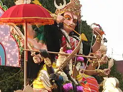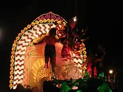 Madikeri Dasara (Kannada: ಮಡಿಕೇರಿ ದಸರ) is the Dasara festival is celebrated in the city of Madikeri in the Indian State of Karnataka. It has a history of over a hundred years. Madikeri Dasara is a ten-day celebration, which is beautified by 4 Karagas and 10 Mantapas depicting killing of Asuras (demons) by Suras (God/Goddess). Preparation for Madikeri dasara starts before 3 months. Most of the money for this celebration is collected from the people of Kodagu. Each of these 10 Mantapa committee has 50 to 100 members. A Mantapa comprises idols of height 8 to 15 feet, which is set up at the front of a lighting board. The cost of building a Mantapa will be 10 to 20 Lakhs.