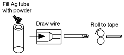 Superconducting properties and low cost make magnesium diboride attractive for a variety of applications.[18][19] For those applications, MgB2 powder is compressed with silver metal (or 316 stainless steel) into wire and sometimes tape via the Powder-in-tube process.
