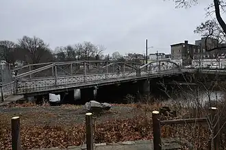 The Main Street Bridge formerly carried Main Street over the Rippowam River (also known as Mill River) just outside downtown Stamford, Connecticut. It was designed and manufactured by the Berlin Iron Bridge Company in 1888. It is a two-span wrought iron lenticular truss bridge, each span 60 feet (18 m) long, although there are supporting piers every 12 feet (3.7 m) feet. The abutments and central pier are cut granite and other stone, faced in concrete.[2]: 11