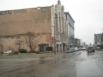 The Majestic Theatre is a historic movie theater located at 240–246 Collinsville Ave. in East St. Louis, Illinois. Built in 1928, the theater replaced a 1907 theater which had burned down. The Spanish Gothic theater was designed by the Boller Brothers, who were nationally prominent theater architects. Multicolored tiles decorate the building's front façade, forming patterned mosaics. The front façade also features piers with decorative peaks and tall arched windows. The theater attracted numerous celebrities to its grand opening, and it represented several firsts among East St. Louis cinemas; it was the first in the city with a modern air conditioning system and the first in Southern Illinois to show talkies. The theater closed in the 1960s.[2]