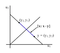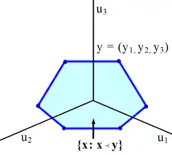 For we have if and only if is in the convex hull of all vectors obtained by permuting the coordinates of . This is equivalent to saying that for some doubly stochastic matrix.[2]: Thm. 2.1 In particular, can be written as a convex combination of permutations of .[3] In other words, is in the permutahedron of .