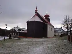The most important monument of Malá Úpa is the Church of Saints Peter and Paul. It is a simple church, built in 1788–1799 and rebuilt after the fire in 1806.[7]