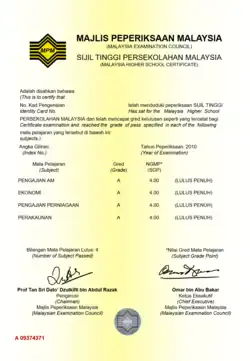 3. ^ a b c d e f g h i "Peraturan dan skema peperiksaan STPM" [STPM examination rules and schemes] (PDF) (in Malay). Archived from the original (PDF) on 10 August 2021.