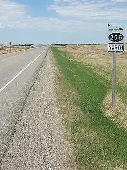 After crossing the international border, PR 256 becomes North Dakota Highway 256 (ND 256).[2]