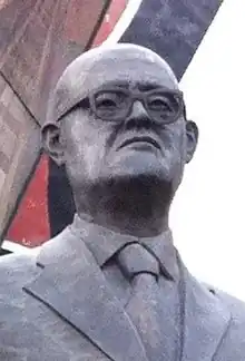 ![]() Detail of a sculpture of David Alfaro Siqueiros and Suárez outside the Poliforum Siqueiros, Mexico City | |