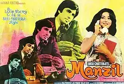 Manzil (lit.'Destination') is a 1979 Indian Hindi-language romantic drama film directed by Basu Chatterjee. The film is a remake of the 1965 Bengali film Akash Kusum. Manzil stars Amitabh Bachchan and Moushumi Chatterjee in pivotal roles. Filming was intermittent between 1972 and 1979, when it was finally released. The film won critical acclaim for its story, while Bachchan was praised for his performance, although, the film did only average business at the box office. The song Rimjhim Gire Saawan was a chartbuster,[1] and the picturization of Lata Mangeshkar's version of the song that was shot in real rain in Mumbai made it a perennial favorite.[2] The movie was reported to be the only Hindi movie to have galvanometer in its core plot.[3]