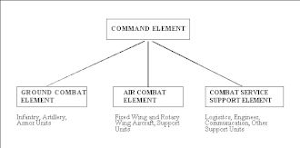 - The ground combat element (GCE), composed primarily of infantry units (infantry battalions organized into battalion landing teams, regimental combat teams, and Marine divisions). These organizations contain a headquarters unit that provides command and control (management and planning for manpower, intelligence, operations and training, and logistics functions) as well as scout/sniper, aviation liaison/forward air controller, NBC defense, communications, service (supply, motor transport, weapons maintenance, and dining facility), and Navy combat medical and chaplain's corps personnel. The GCE also contains combat support units, including artillery, armor (tank, assault amphibian, and light armored reconnaissance), combat engineer (including EOD), and reconnaissance units. At the division level, the GCE also contains limited organic combat service support, including a truck company, a military police/law enforcement company, and the division band.