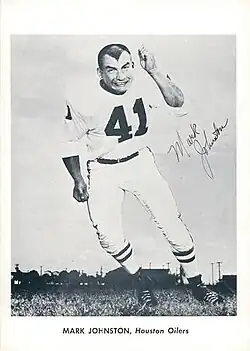 Mark Johnston (born March 4, 1938) is an American former professional football player who was a cornerback for five seasons (1960–1964) in the American Football League (AFL) with the Houston Oilers, New York Jets, and the Oakland Raiders. He was an AFL All-Star in 1961, and was with the Oilers in the first three AFL Championship games, winning the title in 1960 and 1961.