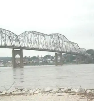 The Mark Twain Memorial Bridge was a cantilevered through truss bridge carrying US 36 over the Mississippi River. It was replaced in 2000 with the extension of I-72 and subsequently demolished.