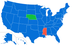 In the United States, the minimum age at which a person can marry, with or without parental consent or other authorization, is set by each state and territory, either by statute or where the common law applies. The general marriage age (lacking authorization for an exception) is 18 years of age in all states except Nebraska, where the general marriage age is 19, and Mississippi, where the general marriage age is 21.[1] The general marriage age is commonly the age of majority, though in Alabama the general marriage age is 18 while the age of majority is 19.