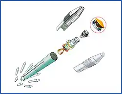 - Three large solid rocket motors called RAD rockets (Rocket Assisted Descent), each providing about a ton of force (10 kilonewtons) for nearly 4 seconds;[39]