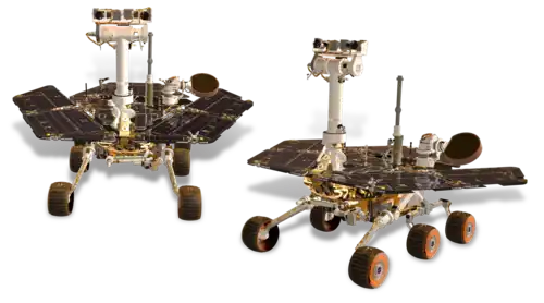 NASA's Mars Exploration Rover (MER) mission was a robotic space mission involving two Mars rovers, Spirit and Opportunity, exploring the planet Mars. It began in 2003 with the launch of the two rovers to explore the Martian surface and geology; both landed on Mars at separate locations in January 2004. Both rovers far outlived their planned missions of 90 Martian solar days: MER-A Spirit was active until March 22, 2010,[1] while MER-B Opportunity was active until June 10, 2018.[2]