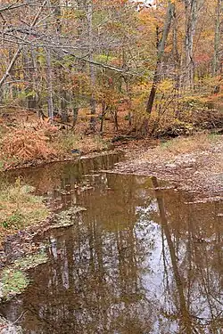 Marsh Creek is a very small stream; it has been described as "tiny".[5] At the point where the creek meets Bowman Creek, there is a deep pool of water on the latter creek, known as Barn Pool.[5]