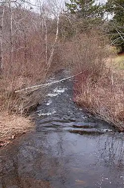 Upstream of Silo Road, the streambed of Marsh Creek mainly consists of fine sand. Downstream of that road, the streambed consists of coarse gravel, with an average particle size of 20.3 millimetres (0.80 in).[3] The surficial geology along the creek in its lower reaches mainly consists of alluvium. Further away from the creek, there is a glacial or resedimented till known as Wisconsinan Till, as well as a few patches of Wisconsinan Ice-Contact Stratified Drift and bedrock consisting of sandstone and shale. There is Wisconsinan Outwash near the mouth of the creek and two patches of wetland near Broadway.[5] The upper reaches of the watershed are mainly dominated by Wisconsinan Till, with bedrock occurring along the edges of the watershed. There are also a few patches of alluvium and three patches of wetland.[6]