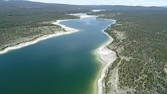 Martin Lake is an endorheic freshwater lake in the West Chilcotin area of British Columbia, Canada, situated just north of the community of Tatla Lake, British Columbia. This small alkaline lake has no physical outflow (Martin Lake Creek flows underground) and the water level has been dropping slowly over time. Since the 1980s the lake has divided into two separate lakes with a land bridge between them.
