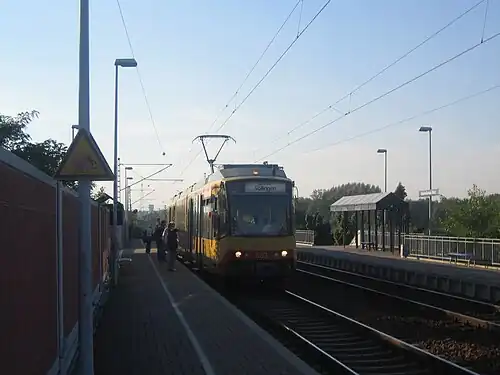 Maximiliansau West station is a light rail station on S 5, S 51 and S 52 lines of the Karlsruhe Stadtbahn system in the municipality of Wörth am Rhein, Rhineland-Palatinate, Germany. The station is also served by regional service RB 51 by DB Regio Mitte.