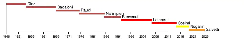 | 1 | Furio Diaz | 1946 | 1954 | Italian Communist Party |