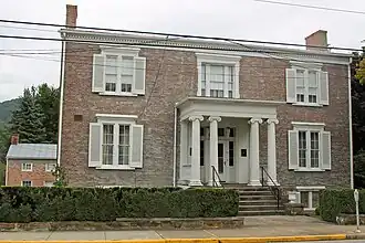 The McCoy House, also known as Franklin Town Office or Pendleton County Library, is a historic home located at Franklin, Pendleton County, West Virginia. It was built in 1848, and is a two- to three-story, L-shaped, brick building in the Greek Revival-style. It features a one-bay entrance portico with two sets of double Ionic order columns. A three-story porch is incorporated into the northeastern section.[2]