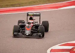 The McLaren MP4-30 was a Formula One racing car designed by Tim Goss and Neil Oatley for McLaren to compete in the 2015 Formula One season.[3][4][5] The car was driven by 2005 and 2006 World Drivers' Champion Fernando Alonso, who returned to McLaren eight years after he last drove for the team[6] and 2009 World Champion Jenson Button.[6] Kevin Magnussen, who drove for the team in 2014, temporarily stood in for Alonso after a test accident.[7] Additional testing and development work was carried out by Magnussen, Stoffel Vandoorne and Oliver Turvey.[8][9] The car was the first built by McLaren since the MP4/7A—which contested the 1992 season—to be powered by a Honda engine, known as the RA615H,[10] after McLaren ended their twenty-year partnership with Mercedes at the end of the 2014 season.[11][12]