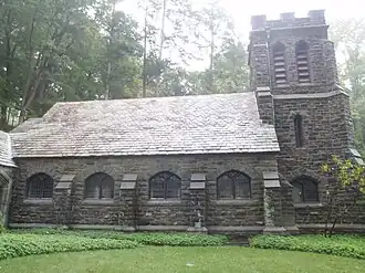 Mead Memorial Chapel is a historic Episcopal chapel at 2 Chapel Road in the hamlet of Waccabuc, town of Lewisboro, Westchester County, New York. It was designed by Hobart B. Upjohn (1876-1949) and built in 1905–1906 in a late Gothic Revival style. It is a rectangular stone building with a steep slate roof. A wing was added in 1929, known as Mead Memorial Hall, and it houses the Mead family archives. It features a bell tower pierced by Gothic arch shaped louvered windows. It was built by Sarah Frances Studwell Mead as a memorial to her husband, George Washington Mead (1827-1899).[2] The Mead family also owned the separately listed The Homestead.