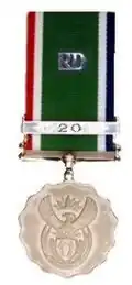 8. ^ Miniature SANDF Troue Diens Medal with 20 Years Clasp as per photo Archived 18 May 2015 at the Wayback Machine
