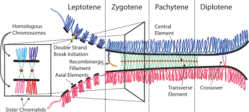 - ^ a b c d Zickler D, Kleckner N (May 2015). "Recombination, Pairing, and Synapsis of Homologs during Meiosis". Cold Spring Harbor Perspectives in Biology. 7 (6): a016626. doi:10.1101/cshperspect.a016626. PMC 4448610. PMID 25986558.