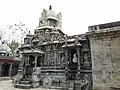 The temple is constructed in Dravidian style of architecture. It is classified as Karak kovil, a temple built resembling the shape of a chariot used during temple festivals. Literary evidence is found in Tamil works, which refer the temple as Karak Koil.[4] Similar architecture of halls (Mandapas) simulating a chariot drawn by elephant or horses is found in Sarangapani temple at Kumbakonam, Sikharagiriswara Temple, Kudumiyamalai, Nageswaraswamy Temple, Kumbakonam, Vriddhagiriswarar Temple, Vriddhachalam and Thyagaraja Temple, Tiruvarur.[5]