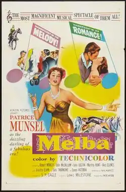 Melba is a 1953 musical biopic drama film of the life of Australian-born soprano Nellie Melba, written by Harry Kurnitz and directed by Lewis Milestone for Horizon Pictures,[1][2] marking the film debut of the Metropolitan Opera's Patrice Munsel.[3][4][5]