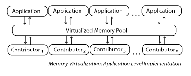 Memory virtualization implementations are distinguished from shared memory systems. Shared memory systems do not permit abstraction of memory resources, thus requiring implementation with a single operating system instance (i.e. not within a clustered application environment).
